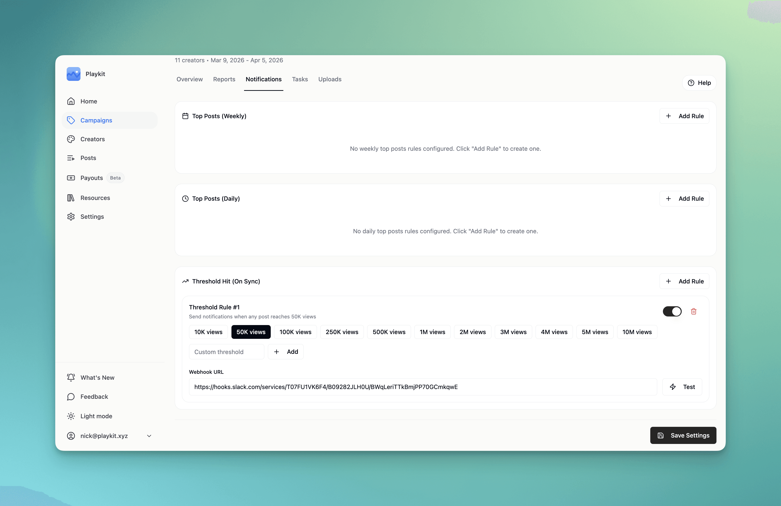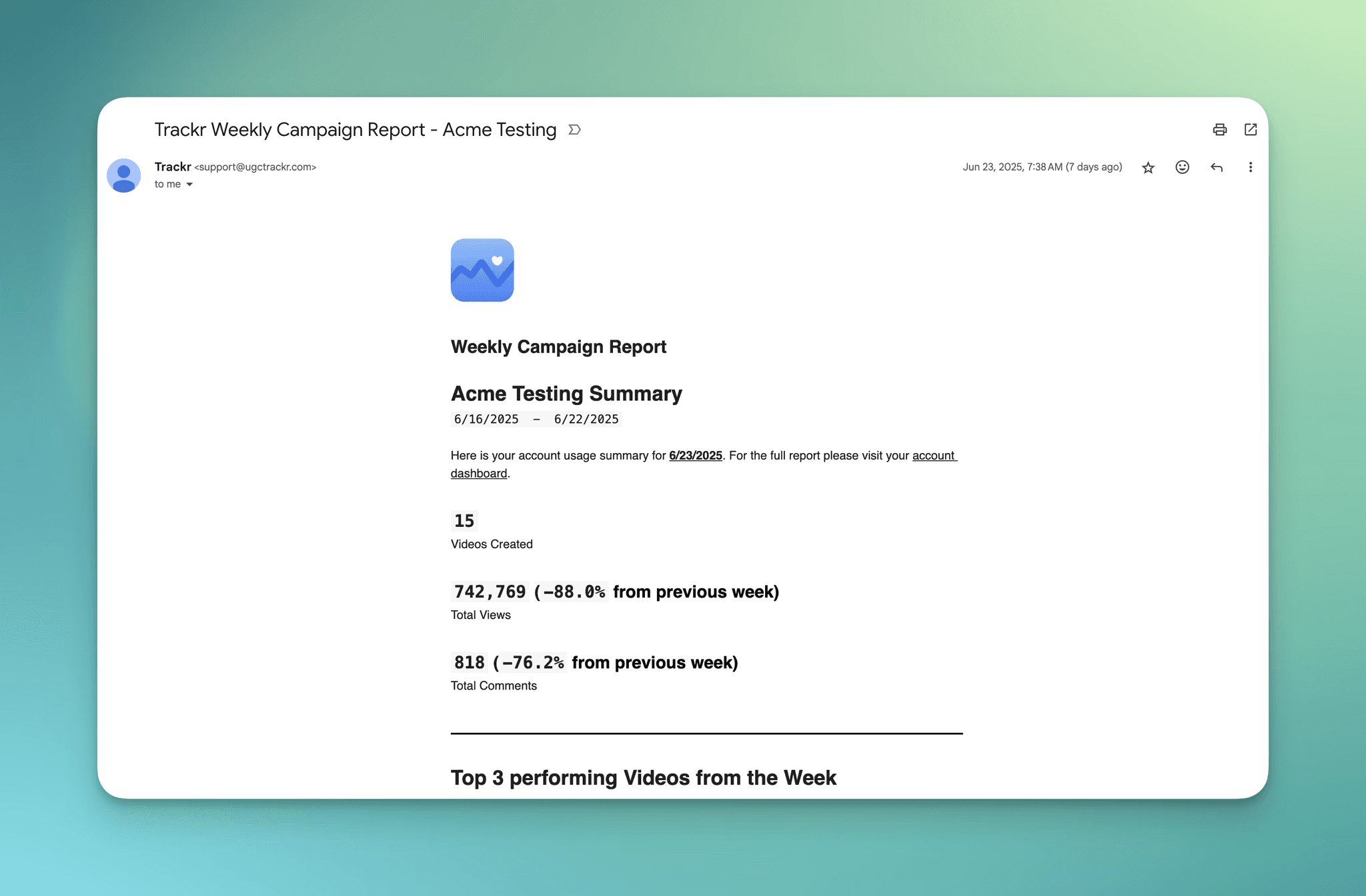 Use it as a external link to send to creators for inspiration and have it automatically send digest emails to creators so they can have insights into their video preformace